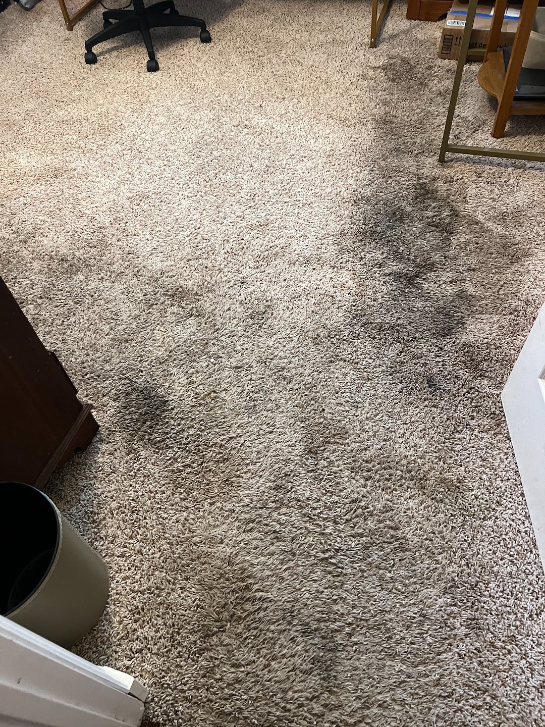 Shampooing steam cleaning heavy duty cleaning stains urine from dogs customer never had carpets clean in about ten years